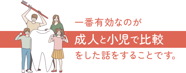「お子さんの歯が並んでいないのは理想の発育量に足りていないから」「顎は10歳までに80%成長するので10歳までに理想の発育量に戻さないといけない」ということを伝えてください。(この時に知らないことを責めるような話し方はNG)