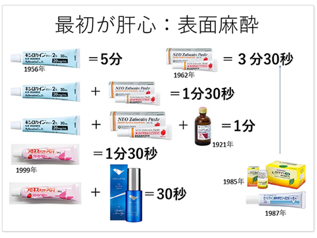 清水先生が提唱するのは、「表面麻酔に高速浸透剤をブレンドする」という無痛化プロトコル。