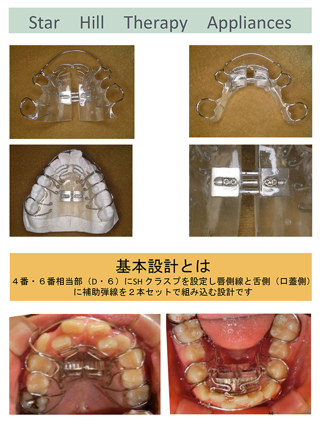 SH療法で使用するのは、正中側方拡大を目的とした可撤式床矯正装置です。