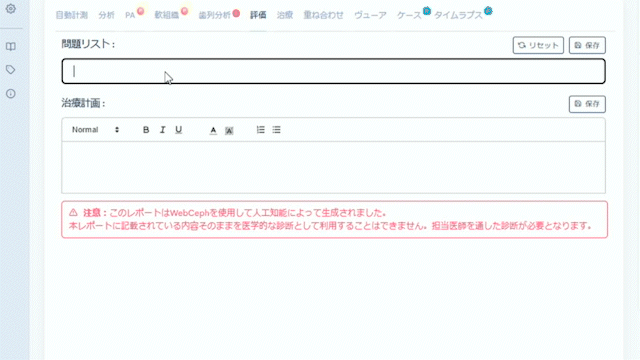 恐らくWEBCEPHの機能の中で一番重要で使いこなすと臨床的にも成約数的にも飛躍的に向上させることができます。