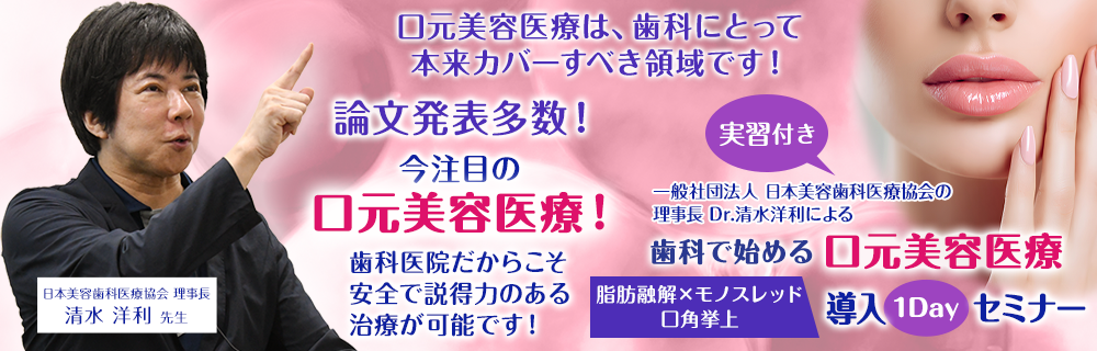一般社団法人 日本美容歯科医療協会の理事長 Dr.清水 洋利による 歯科で始める口元美容医療 “脂肪融解×モノスレッド口角挙上“導入1Dayセミナー