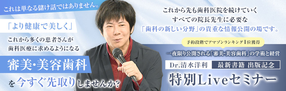 一般社団法人 日本美容歯科医療協会の理事長 Dr.清水 洋利による 『開業医のための先進歯科医療導入コース』