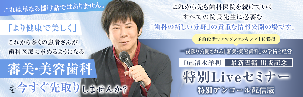 一夜限り公開される「審美・美容歯科」の学術と経営「Dr.清水洋利 -最新書籍 出版記念- 特別Liveセミナー」